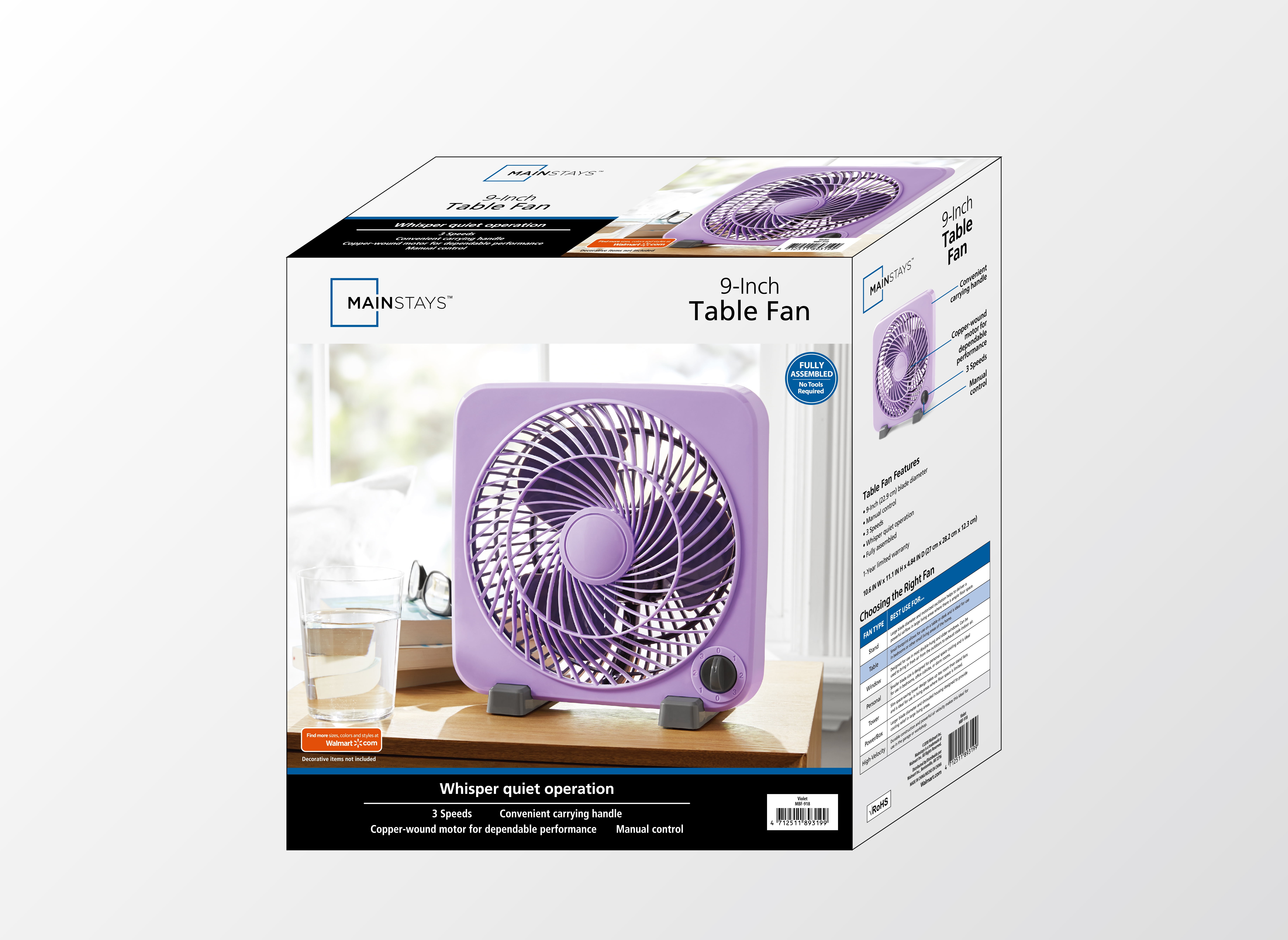 Mainstays 9 Personal 3 Speed Fan Model Mbf 918 Purple Walmart Com